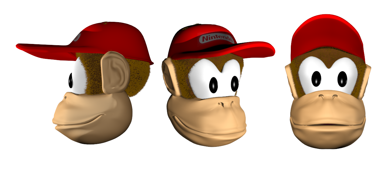 Looking at this render, I also think you might need to make Diddy's hat and/or the top of his head a bit bigger... he kind of looks like a pinhead. :p