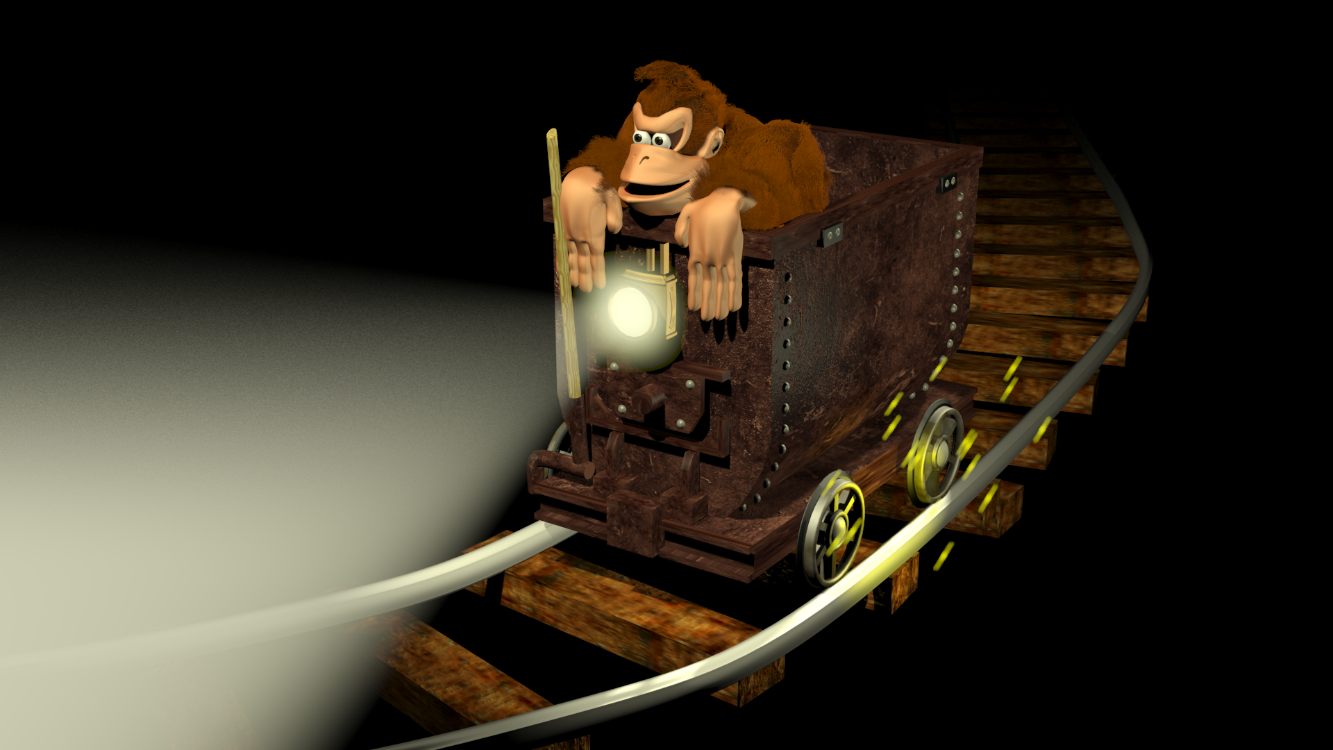 It's looking wonderful! I do agree with mrmugenwii about DK's fingers. His palms should be on top of the cart's edge with his fingers down the front. Also, I know that your minecart is either too big or DK is too small, but I really don't see that as too much of an issue.
