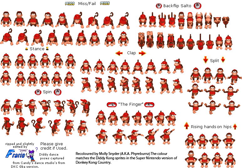 Phyreburnz wrote:Here is the sprite sheet for DK throwing upward. There are only a few custom sprites (maybe 1 or 2), but I put them in with the regular ones so it's easy to tell where they go.