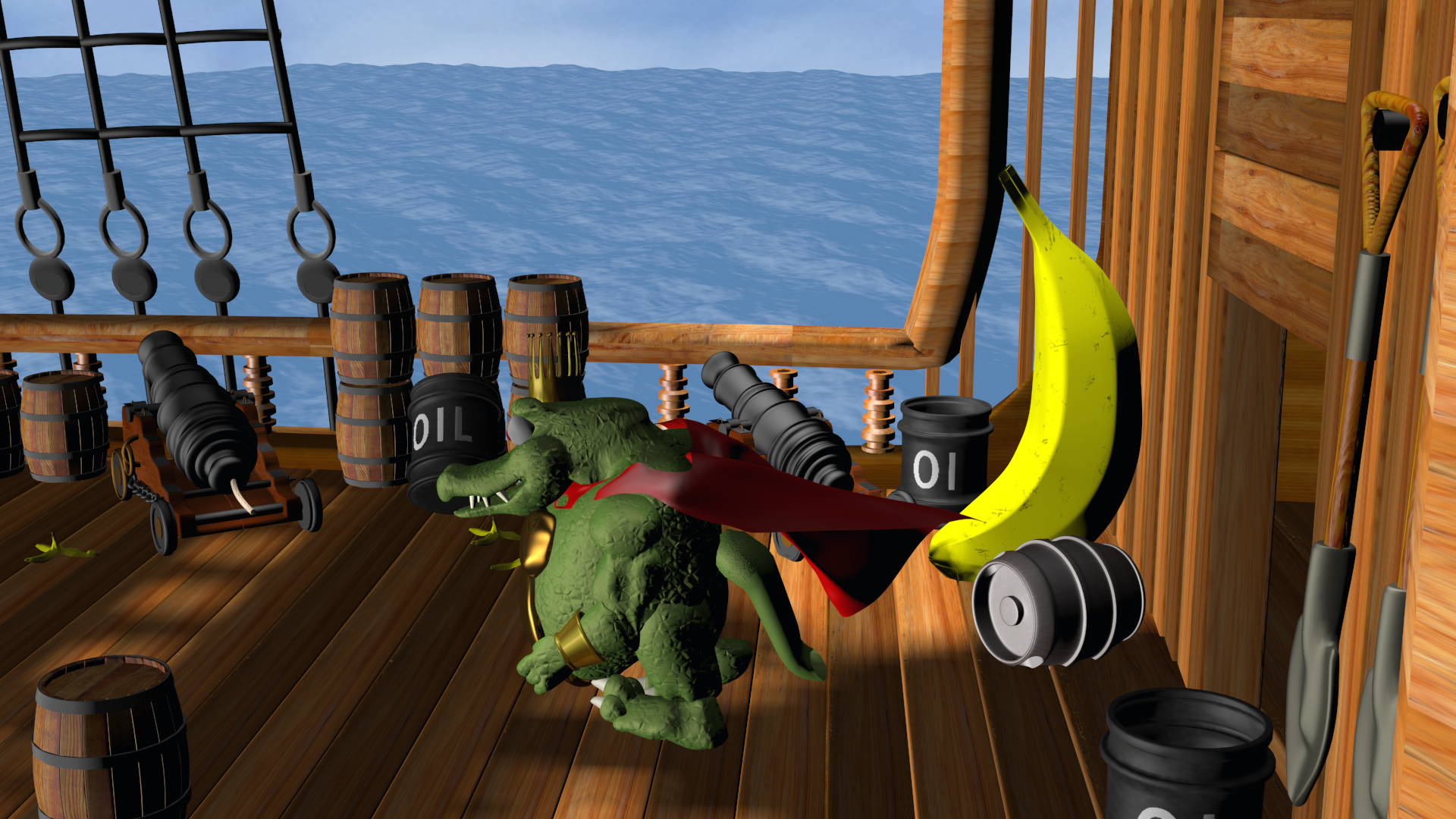 Here is the ship now. A lot more details have added. Trying to keep the feel of the ship close to DKC1 but have elements from DKC2. I also want to add as many details as I can into one shot. I may do a flyby that zooms into the deck where the kremings are working or what ever kremlings do
