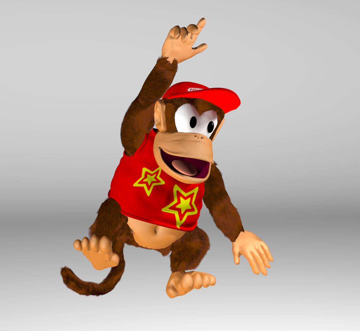 Rare's Diddy never had that opposable toe, so it's going to be very tricky to incorporate it without straying too far from their design. I believe Cyclone can do it, but it'll certainly take some clever modelling.
