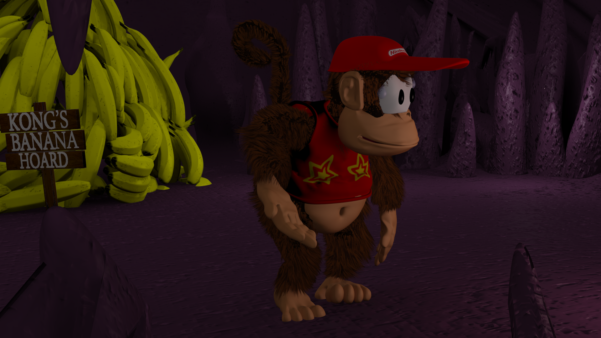 Diddy's fur still looks a bit pale/light, though; a darker brown (perhaps quite like the darkest parts of his fur) would suit him a lot better.