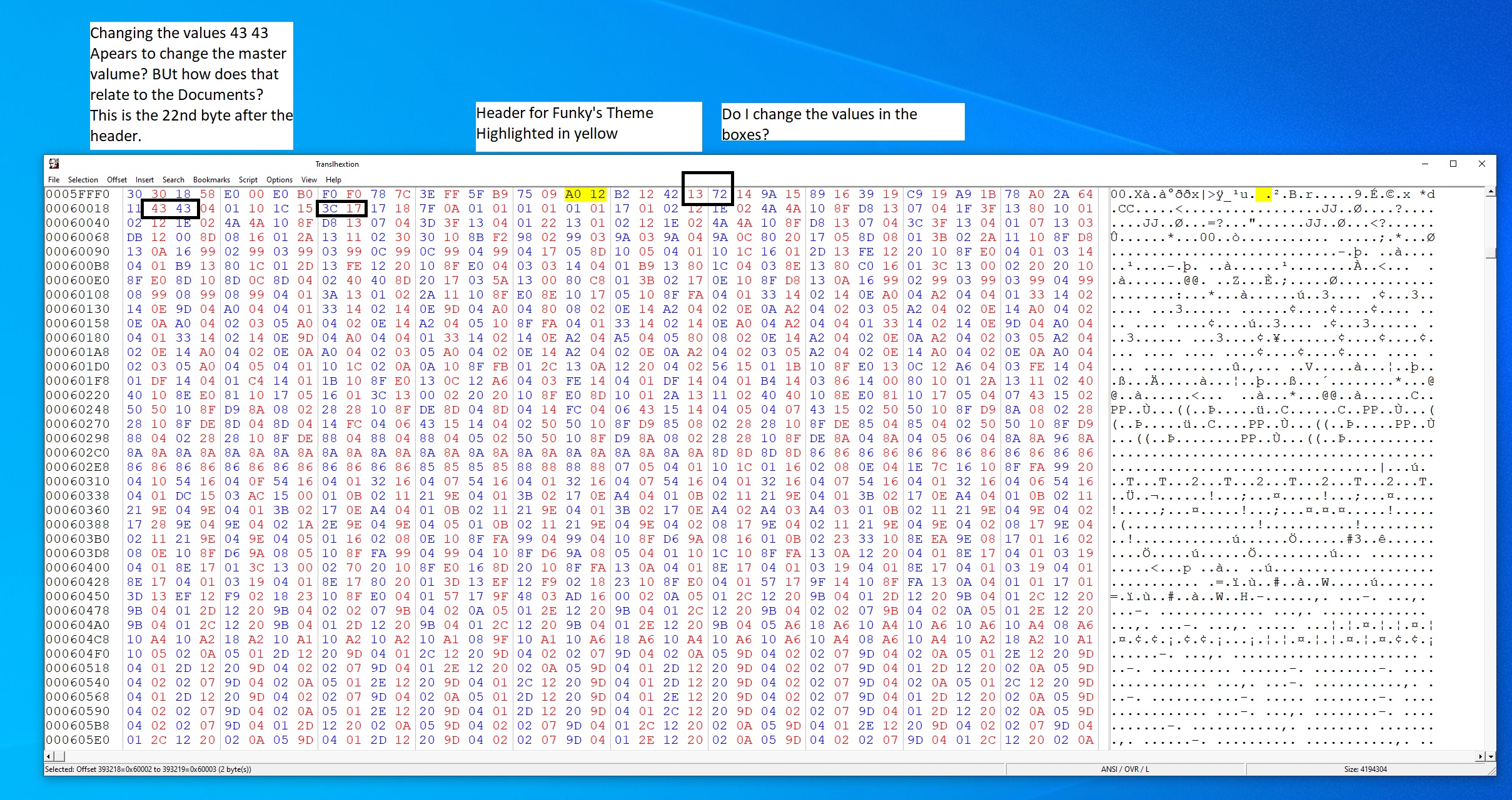 Where in my Hex Editor do I change the values? I'm just trying to get my bearings in my Hex Editor.